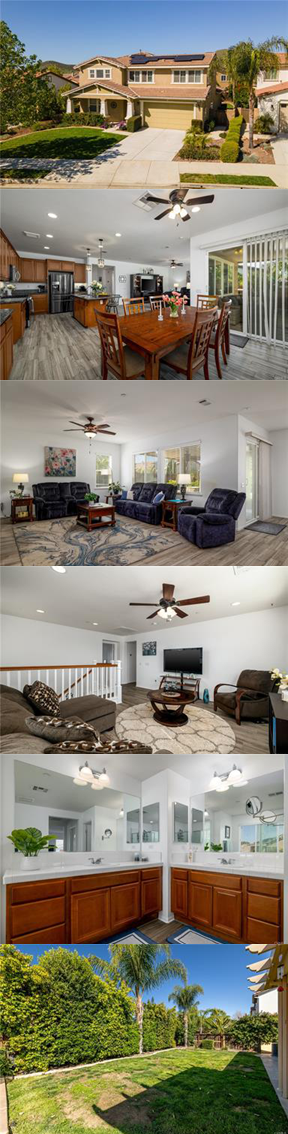 this charming 4 Bedroom, 3 Bathroom Menifee Two-Level beauty tucked on a peaceful cul-de-sac. Built in 2012 and lovingly maintained, the Home excels modern comfort with everyday style. Inside, you’ll love the spacious design featuring a cool concept living area and a versatile upstairs bonus room—perfect for a home office, playroom/cozy movie space. The kitchen comes with rich maple cabinets, granite countertops, and plenty of room to cook and gather. Step in to the backyard to your private retreat with a lush grassy area, bubbling hot tub, and a cozy fire pit ready for smores beneath the stars. Enjoy modern upgrades like solar panels, a water softener system, and access to an association clubhouse with a pool and paddle boats. Plus, you’re just minutes from top-rated schools, shopping, parks, and Canyon Lake. Enjoy Your Approximately 2,535