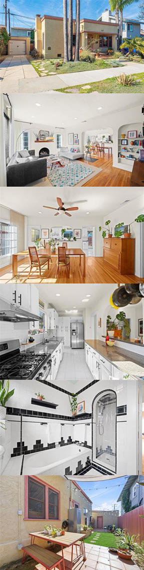 A rare historic charm and modern sustainability, this Spanish Revival bungalow is located in the midst of Bluff Heights Long Beach, just blocks from the beach. Offering approximately 1,100 Square Feet, this 2-Bedroom, 1-Bath Home is filled with natural light and timeless character. Original hardwood floors, graceful archways, custom window treatments, a classic fireplace, and abundant double-hung windows reflect the Home’s period while a thoughtful design supports modern living. The inviting living room flows into the dining area and updated kitchen, creating an ideal space for everyday living and entertaining. The kitchen features white shaker-style cabinetry, stone countertops, classic tile accents, stainless steel appliances, generous storage, and ample prep space. The bathroom retains beautiful original black-and-white tile with tasteful updates, including a pedestal sink and separate tub and shower. Modern enhancements include a fully paid Tesla solar system with Tesla Home battery, electric vehicle charging setup, high-efficiency HVAC with new ducting, whole-House steam humidifier, advanced air filtration system, upgraded electrical panel, copper water main, recessed LED lighting, and a full roof replacement. The exterior areas offer multiple tiled seating spaces, native landscaping, and a place for dining, relaxing and gardening. A carriage-style garage provides flexible use as a studio, workshop, storage and parking for a small vehicle, complemented with a long private driveway with ample off-street parking. Ideally situated near Beaches, Retro Row, the Broadway Corridor, East Village Arts District, dining, shopping, bike paths, and coastal amenities. It Was Built In 1922 & Shows Lots Of