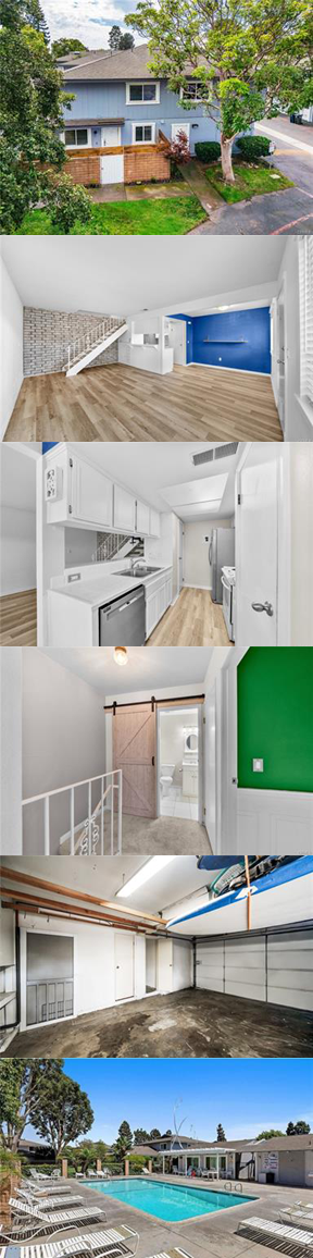 An affordable beach near Harbor Heights Townhome is now for sale in a prime location of Huntington Beach!! Fantastic location in the Huntington Harbour area of Huntington Beach! This inviting 2-Bedroom, 1-Bathroom, 2-Level Property is just minutes from shopping and dining with a Trader Joes and Bolsa Chica State Beach. Enjoy ocean breezes from your large, private gated patio, new laminate vinyl plank flooring downstairs, and new carpet upstairs. There are 2 large Bedrooms upstairs and the main Bedroom also has a walk in closet!! The Bathroom features a stylish barn door and new tub/shower. No neighbor's above and below you! The association offers a pool, half basketball court, clubhouse, lush landscaping, and pet-friendly grounds. Garage is around the corner and if you have a boat/RV, there is a dedicated parking area for a monthly fee. You also have permitted parking for another car since the garage is a 2 car shared garage with your own secured closet for your surfboards and more! Yes, you can put in an Air Conditioning and yes, you can also put in a washer/dryer!! It Shows Perfect With The Approximately 837