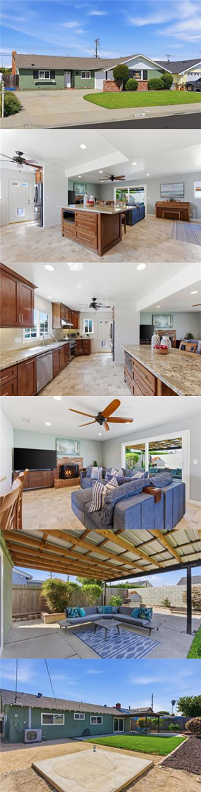 SOLD With an inside tract location, this charming single-level California Classic Home offers a modern design, ideal for comfortable living and entertaining. Located within walking distance to Marine View Middle School and Park, its perfectly positioned near, walking trails, shopping, dining, and much more. Enjoy the coastal ocean breezes and a relaxed Lifestyle, with a beautifully upgraded interior and numerous thoughtful features. The best of the Home is the stylish kitchen, featuring sleek quartz countertops paired with a stunning granite island, providing ample storage on both parts. The kitchen is equipped with stainless appliances, a brand-new Amana range, a convenient microwave drawer, hidden wine rack adds a touch of elegance and a lift for small appliance storage keeps everything organized and easily accessible. The adjacent living room offers a gas fireplace with a beautiful marble hearth and mantel, providing the perfect spot to relax. Stylish ceiling fans with lights and recessed lighting all around add a modern touch, and dual windows make the Home allow for plenty of natural light and energy efficiency. The primary Bedroom features wall-to-wall mirrored closet doors and private backyard slider. The remodeled Bathroom features a convenient step-in shower with glass door, dual shower heads and nickel-hardware. While crown molding and 5-inch baseboards give the Home a polished and elegant feel. On the exterior, the meticulously designed backyard retreat is perfect for enjoying year-round. A patio cover with built-in overhead lighting sets the stage for year-round coastal living. The multi-textured yard features artificial turf, natural grass, and a rubber ground covering for a pet run, mature fruit trees, including apple, lemon and peach, and planters filled with fragrant and colorful roses add to the charm. For added security, the Home boasts a security gate entry, a decorative glass inlaid front door with an automatic locking mechanism, and Wi-Fi-enabled garage door opener. The direct access, 2 car garage also showcases a brand-new water heater, ample storage with built-in cabinetry, and pull-down access to more space. With recent full interior painting, a new kitchen and Bathrooms, luxury vinyl flooring, recessed lighting, and modern qualities, this home is truly turnkey.